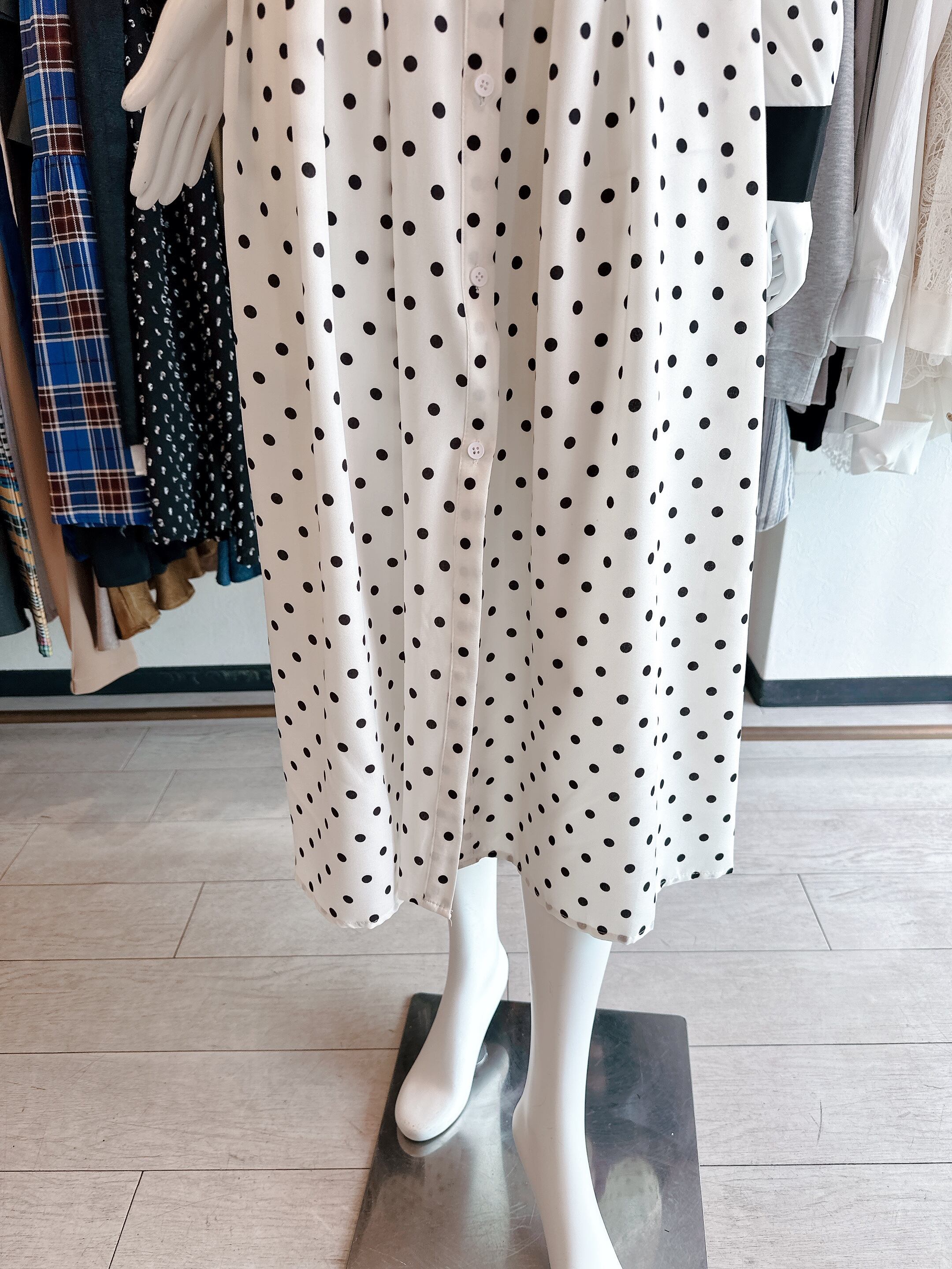 ベルト付きドットワンピース