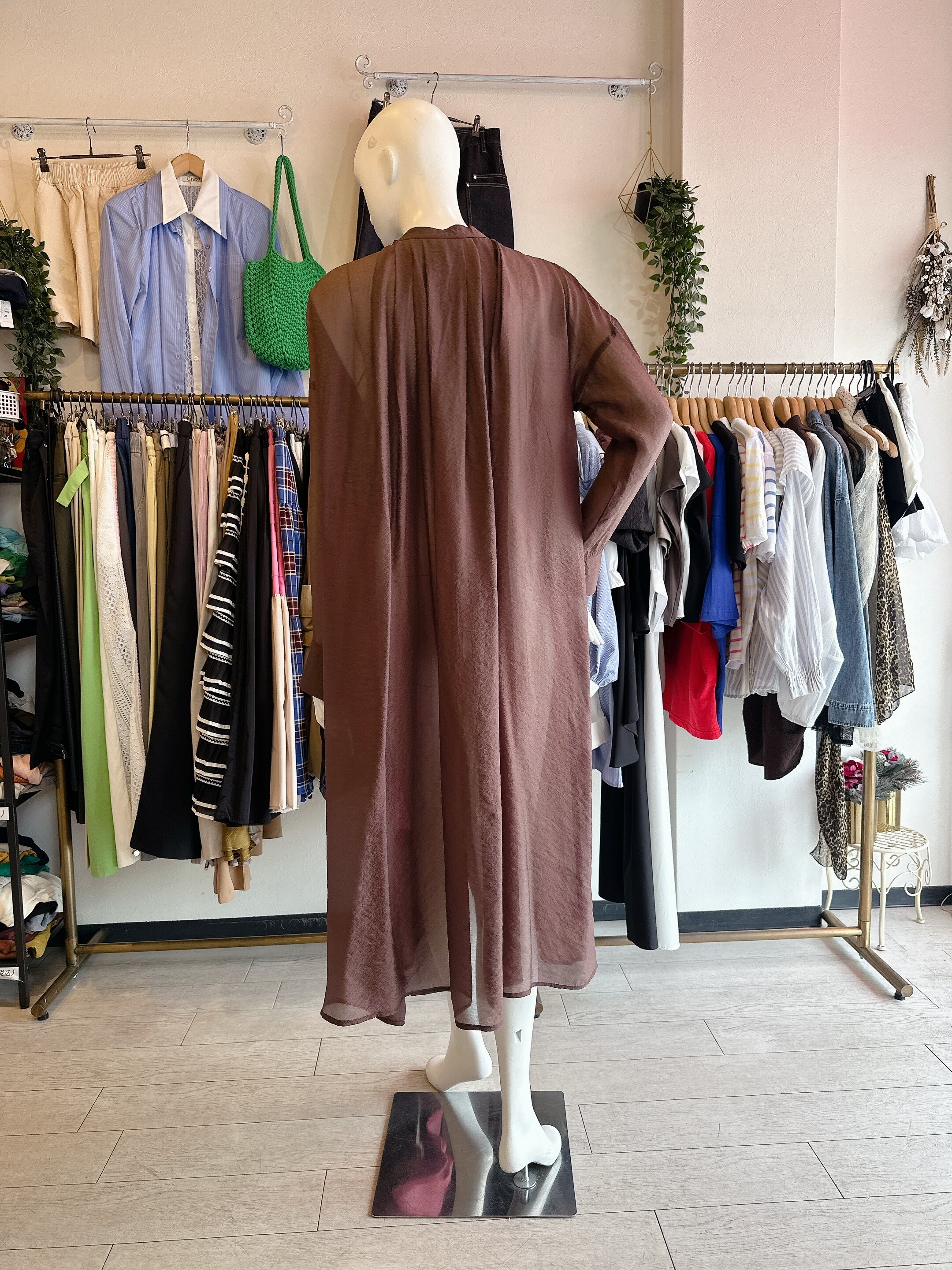 シアー光沢ロングシャツ