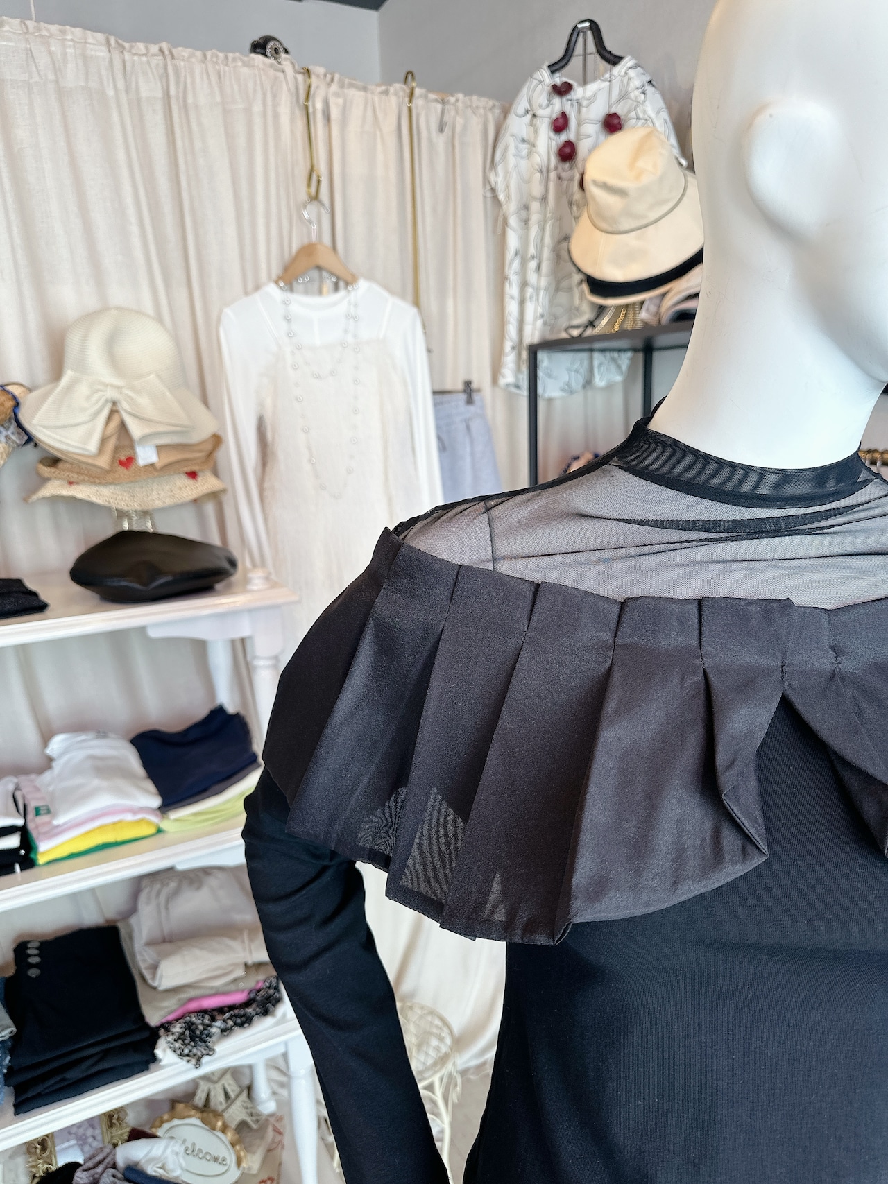 首元シースループリーツカットソー