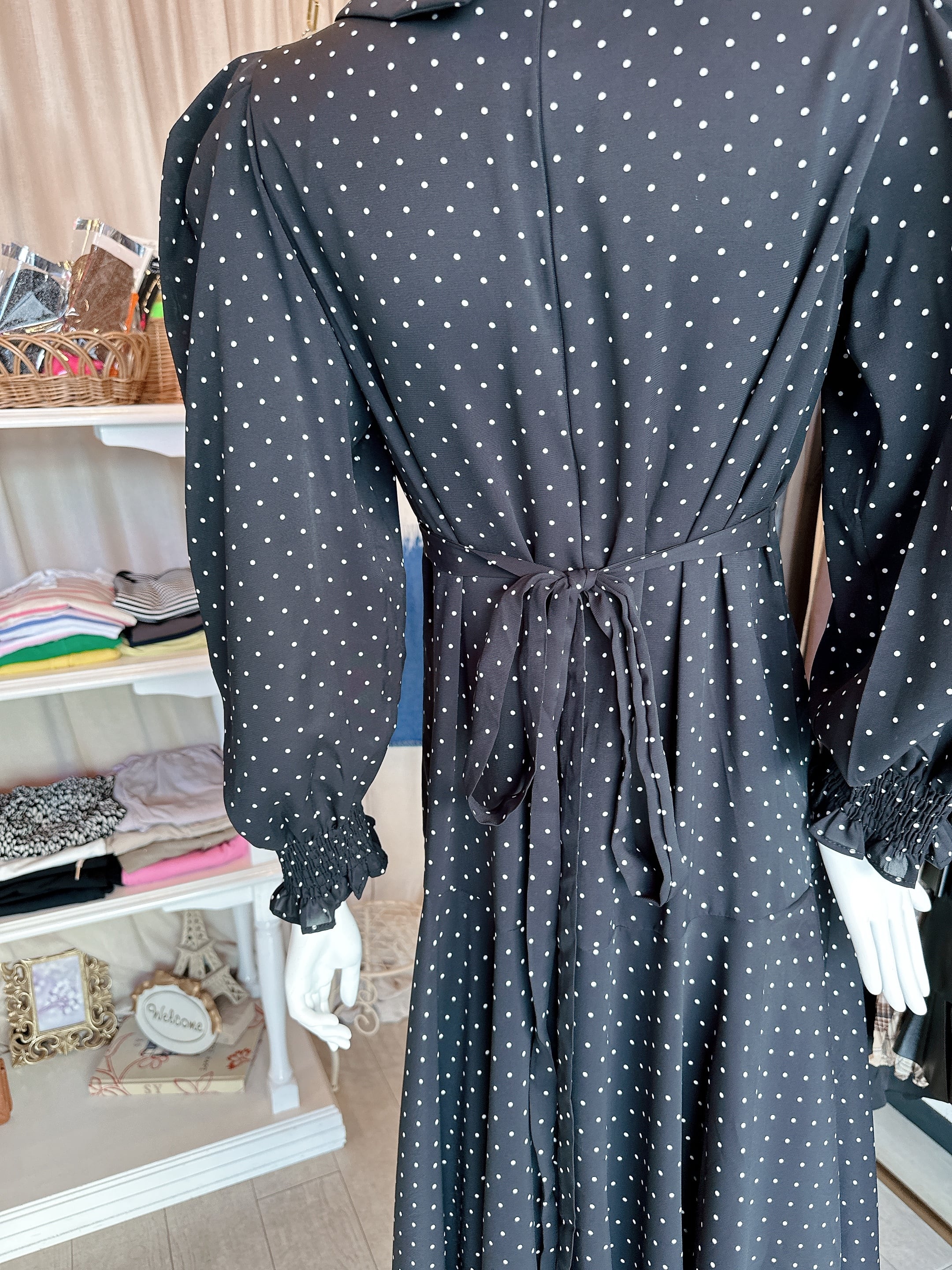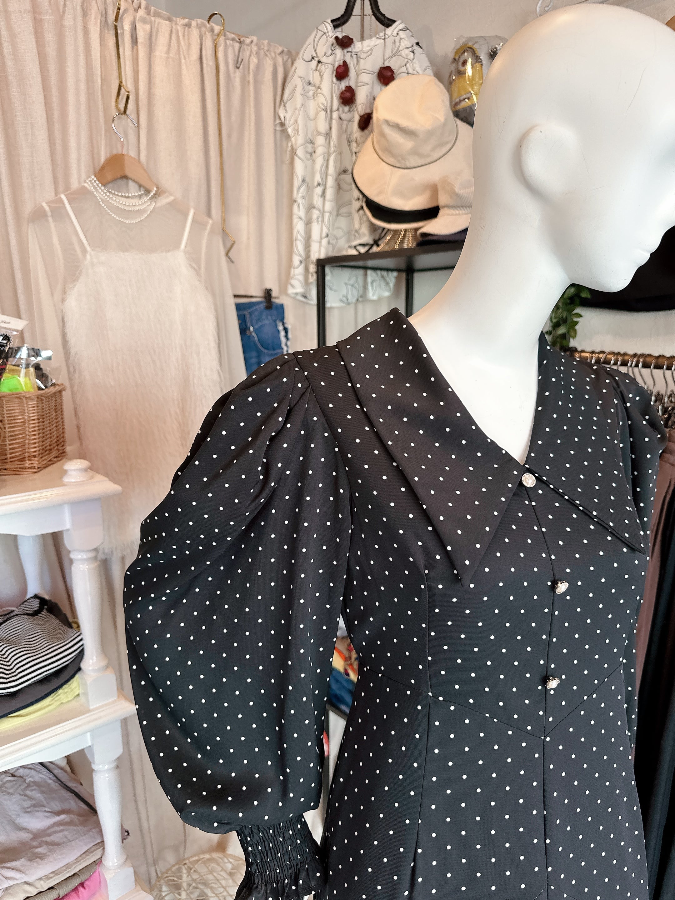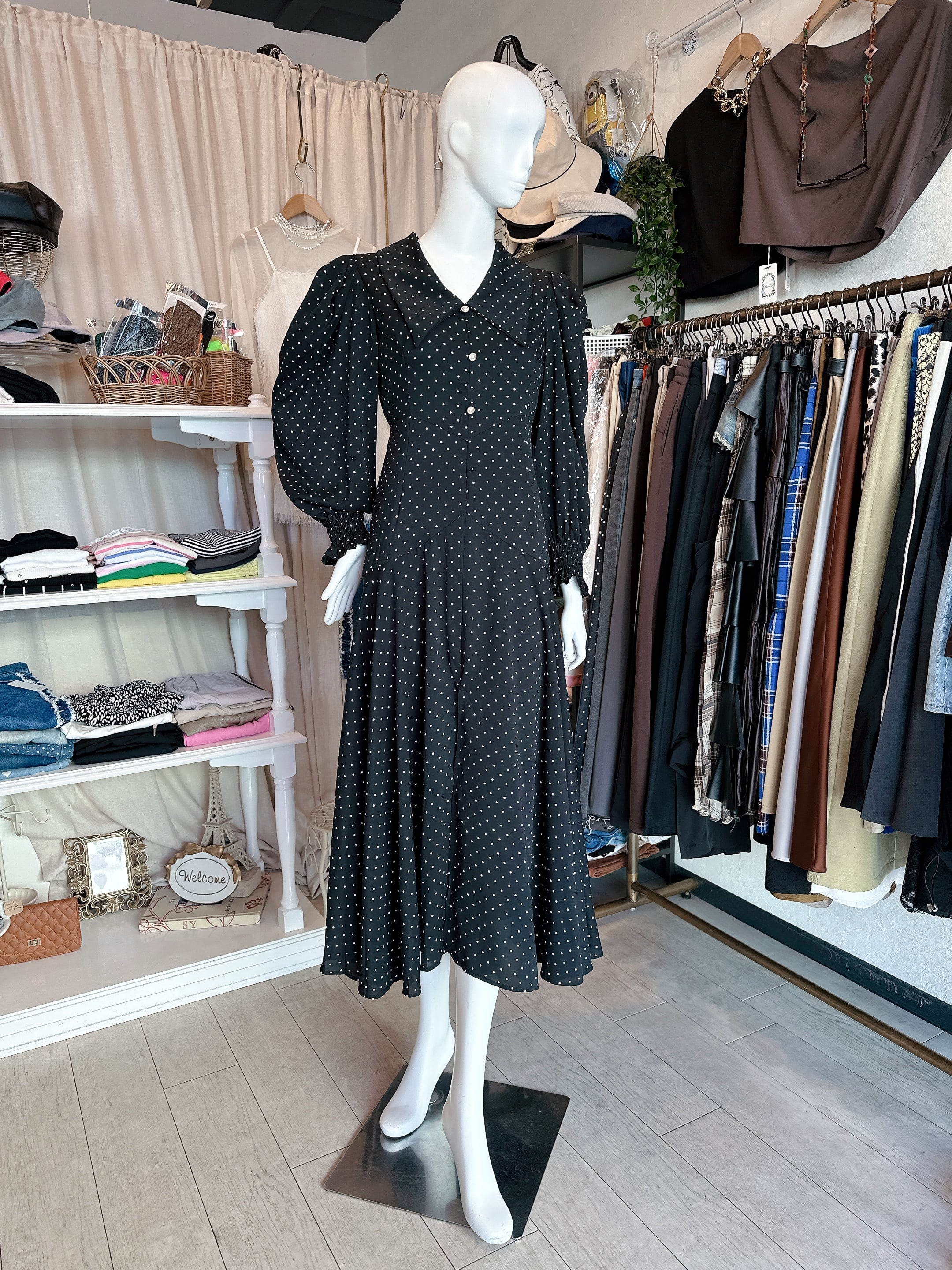 ドットbig襟ワンピース