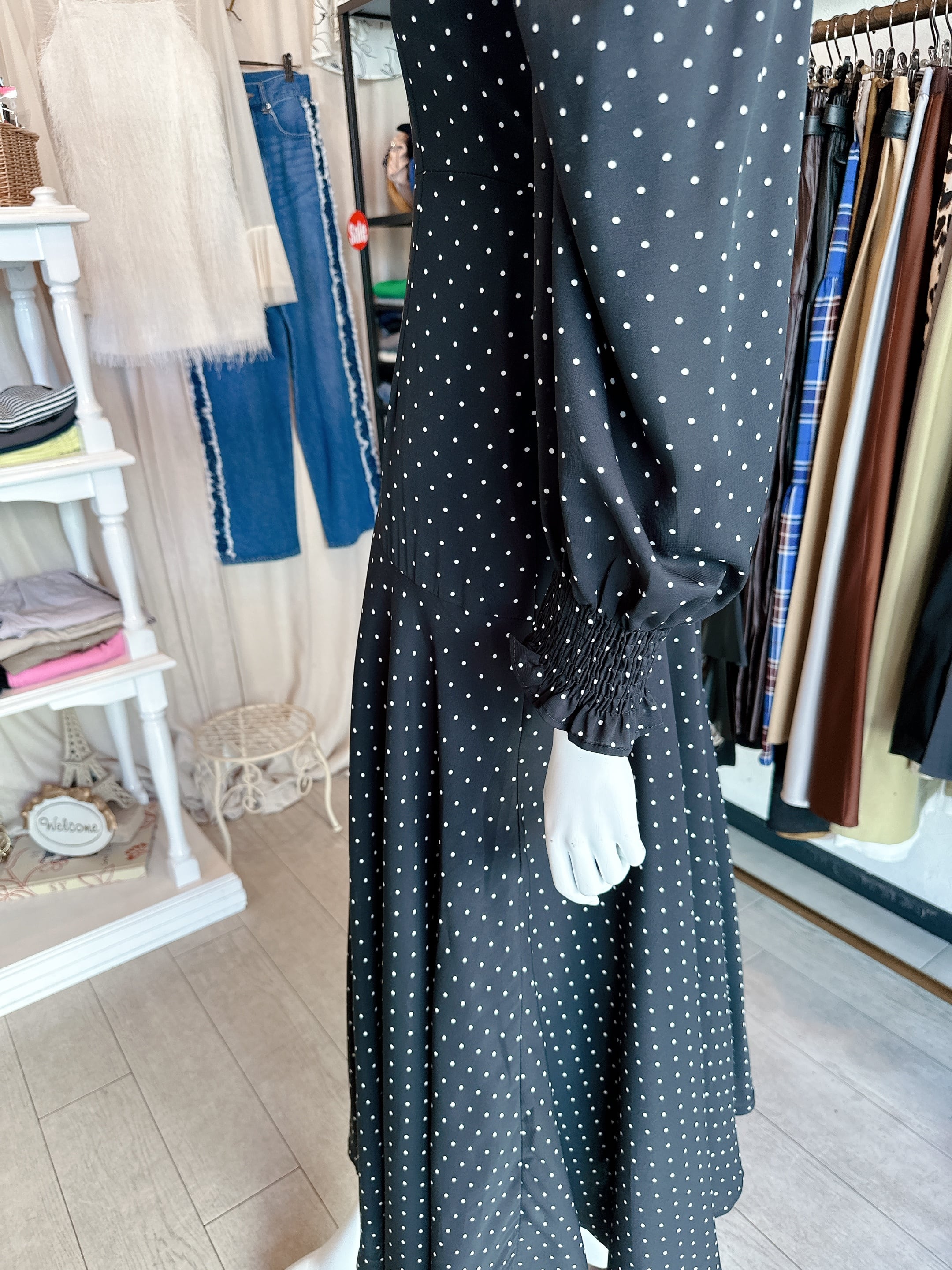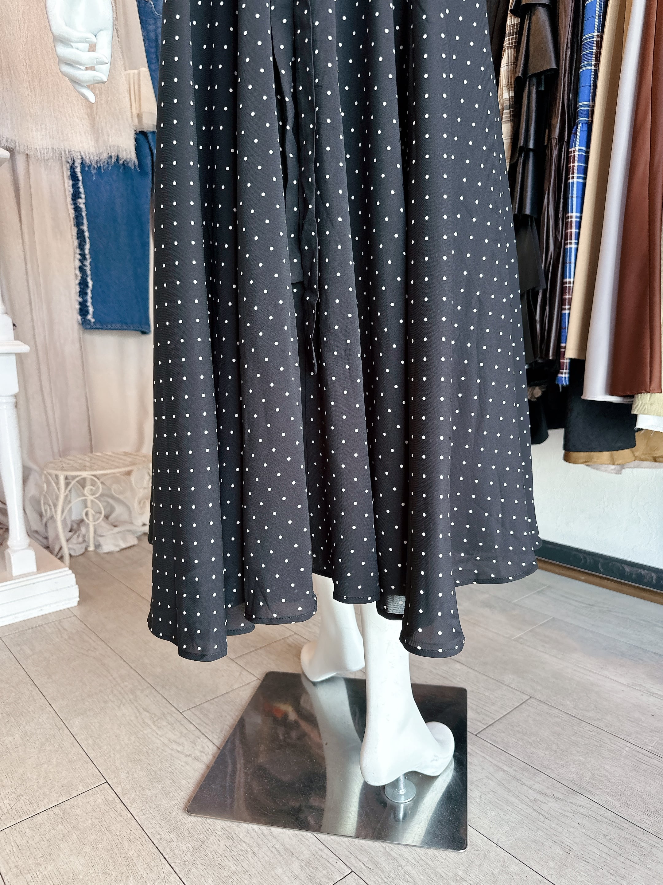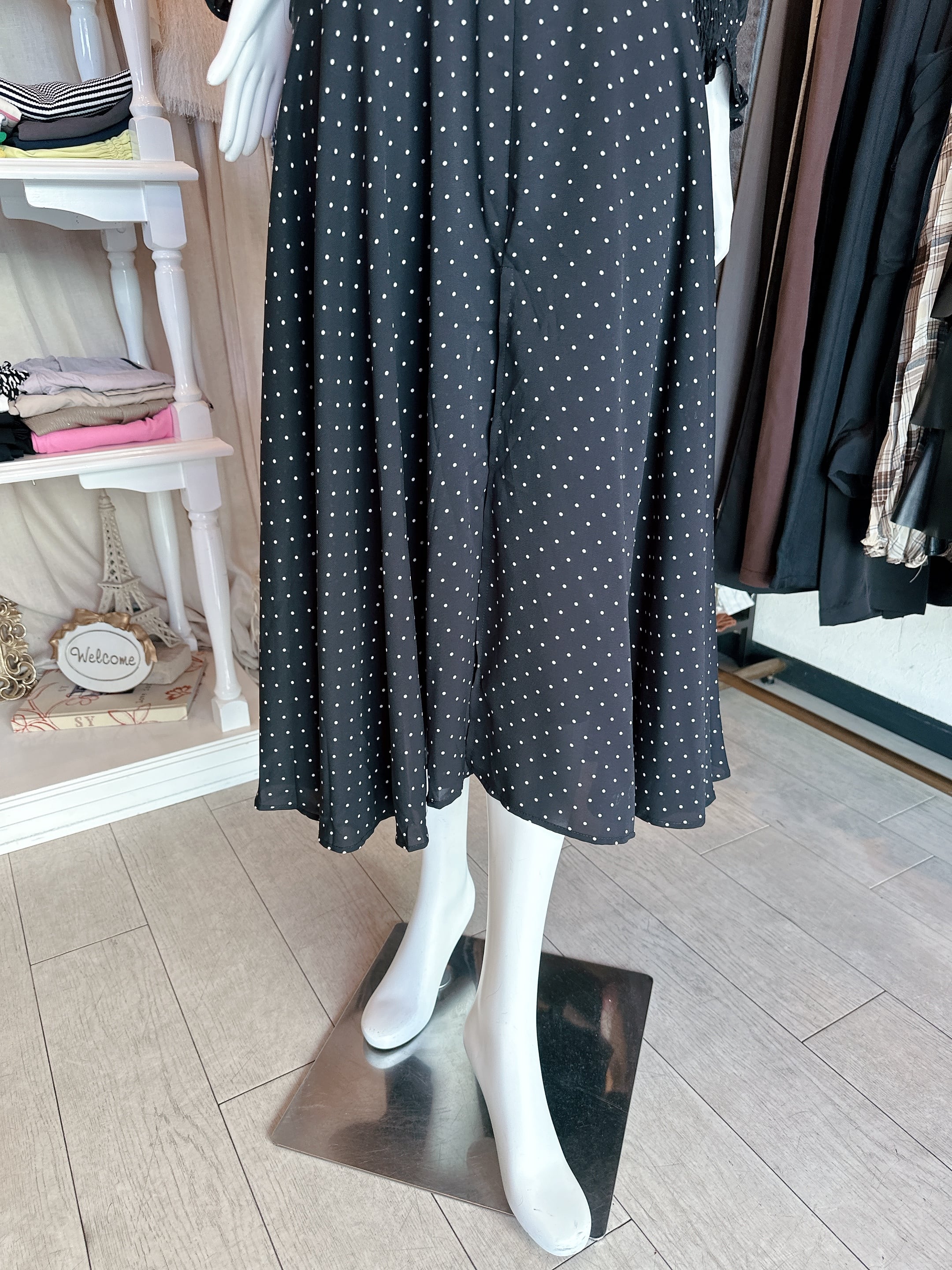 ドットbig襟ワンピース