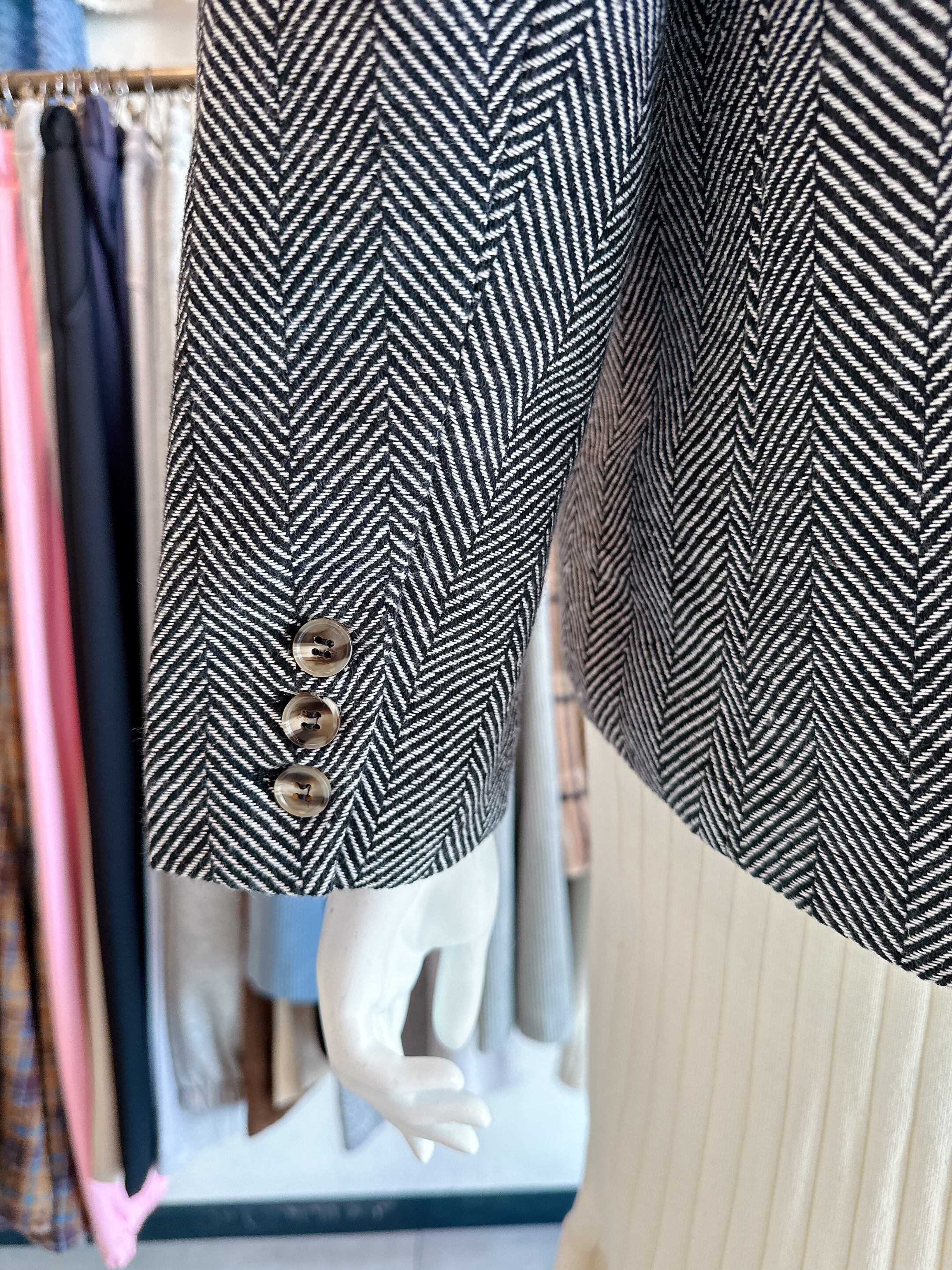 ヘリンボーンレザー襟ジャケット