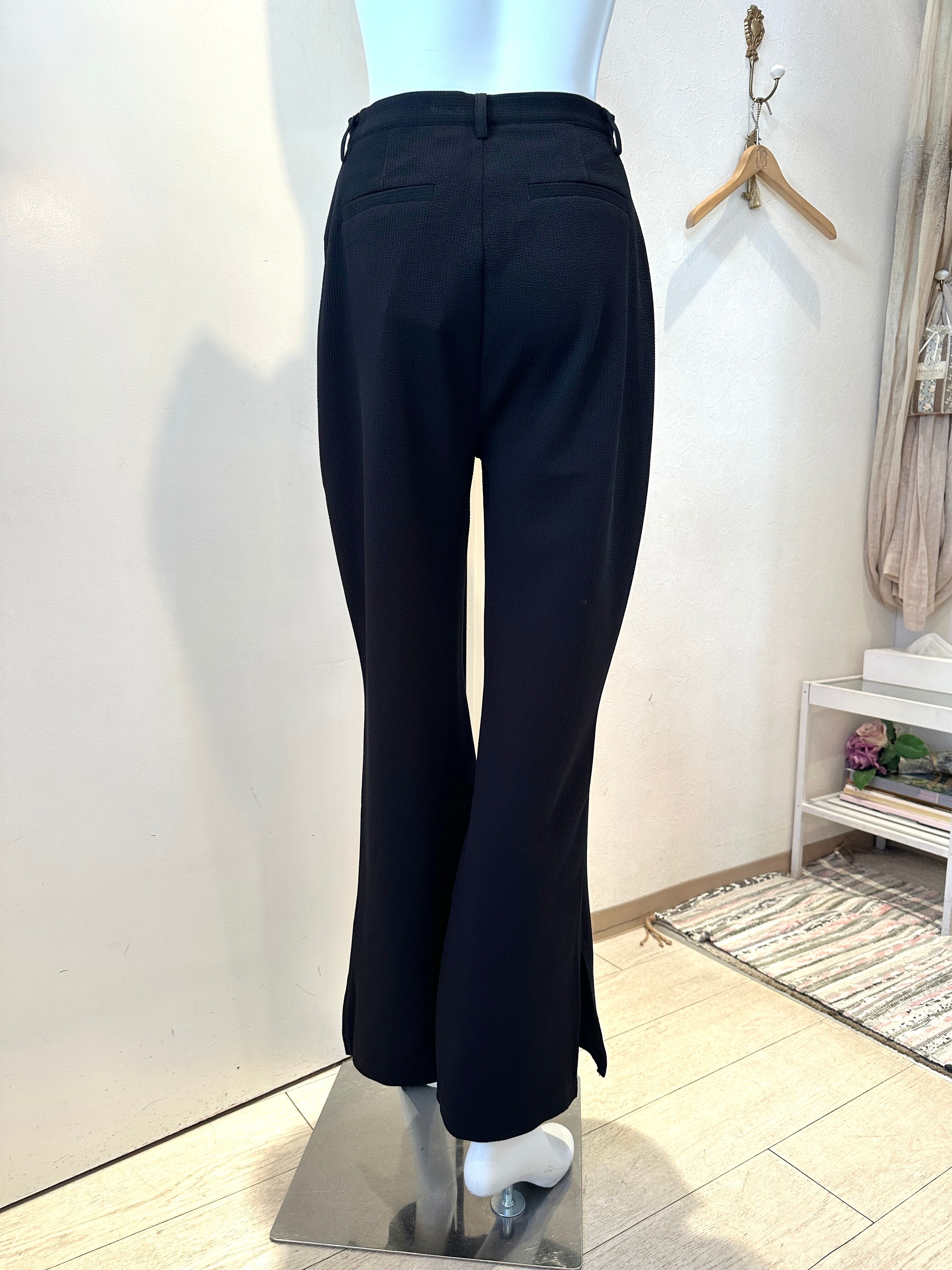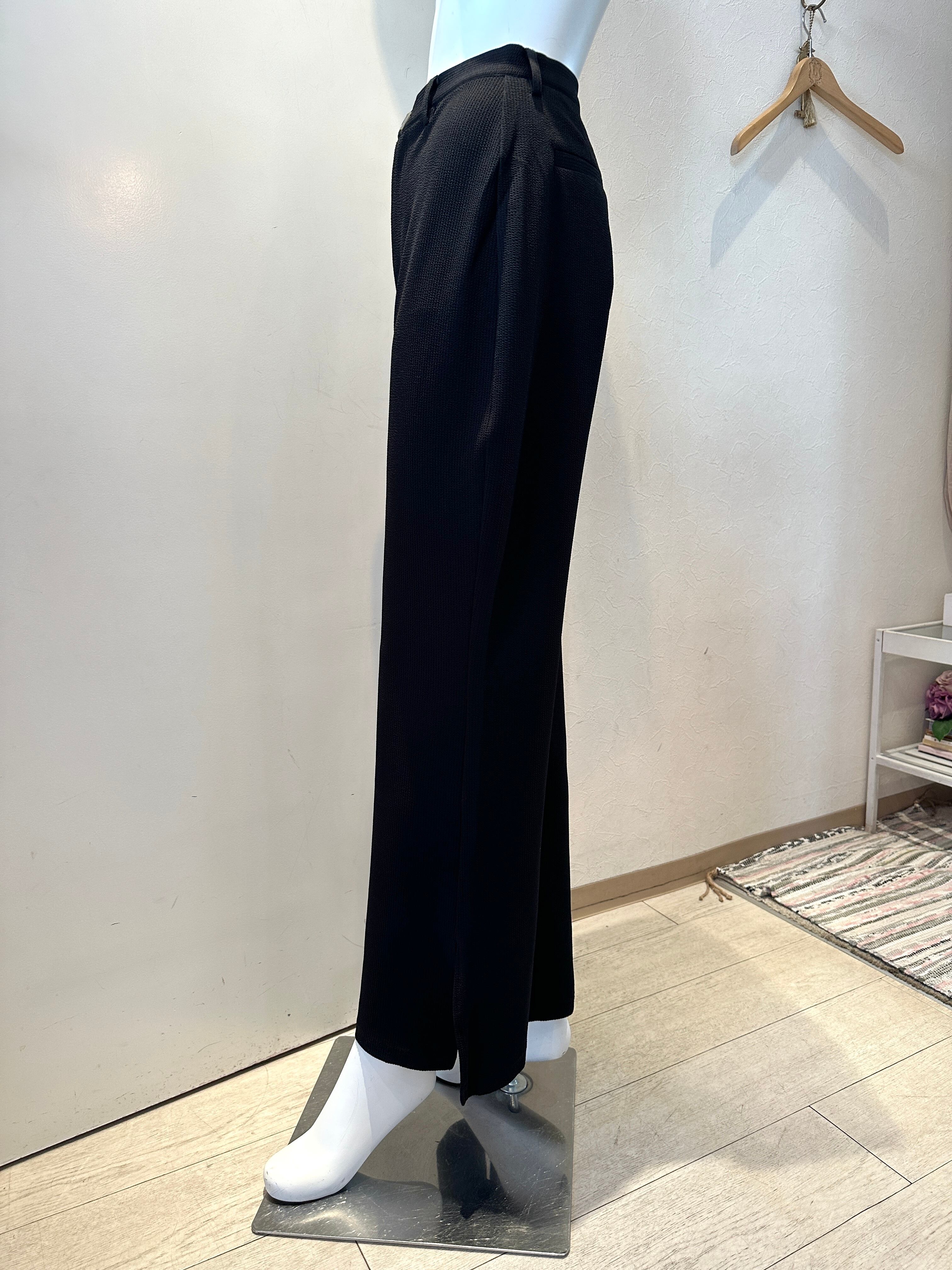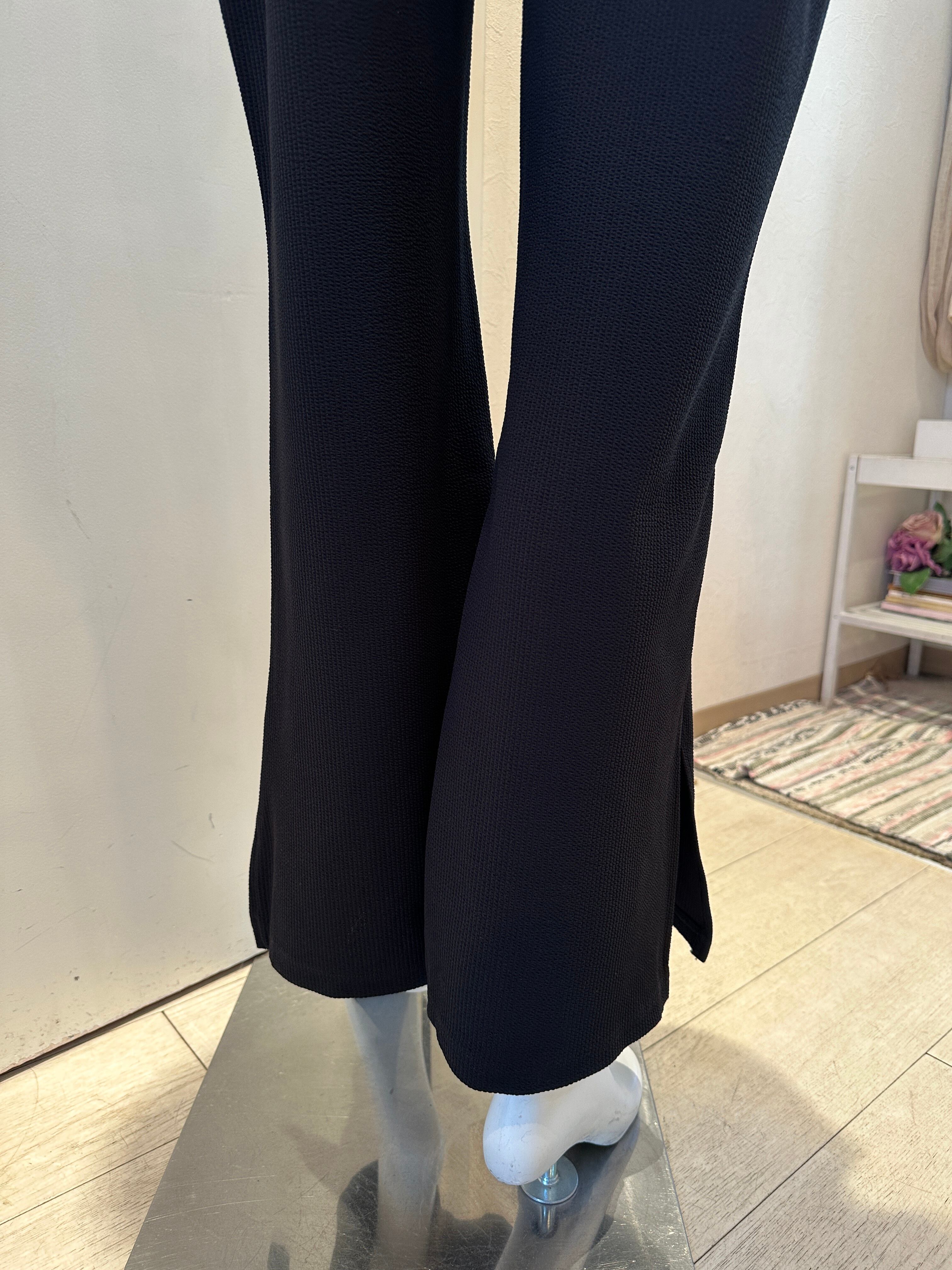 ワッフル地スリット入りフレアパンツ