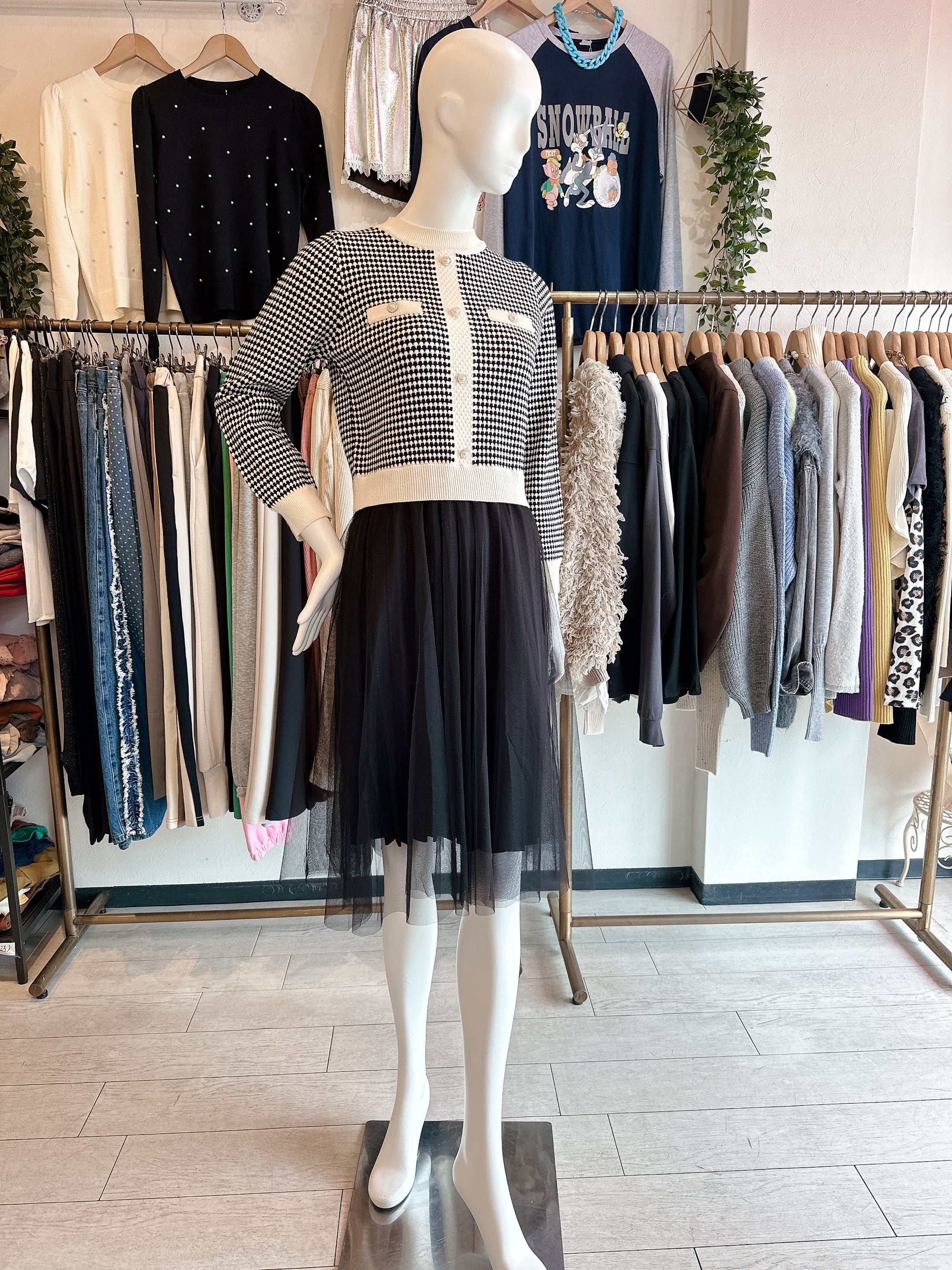 ニット×チュールワンピース