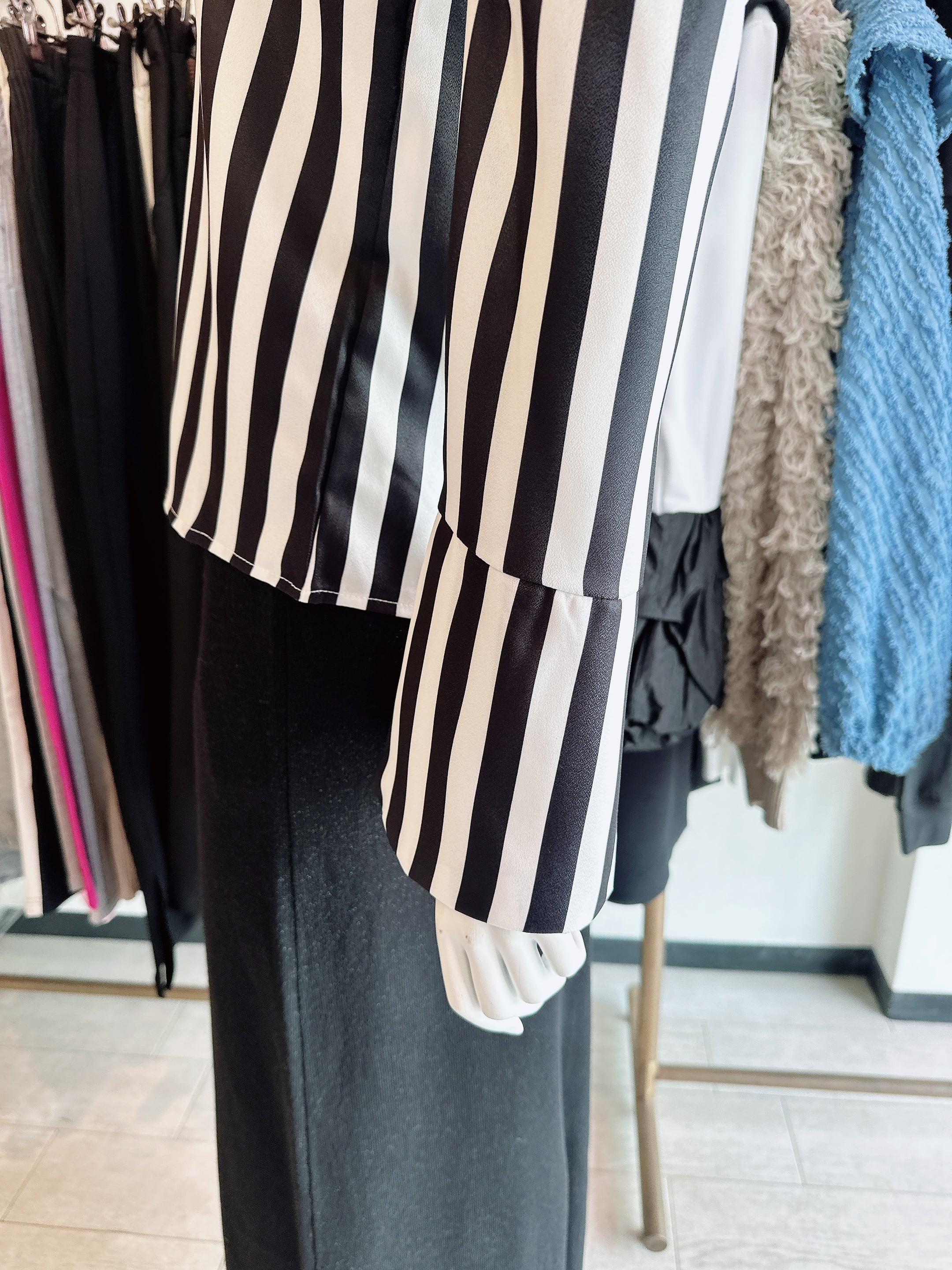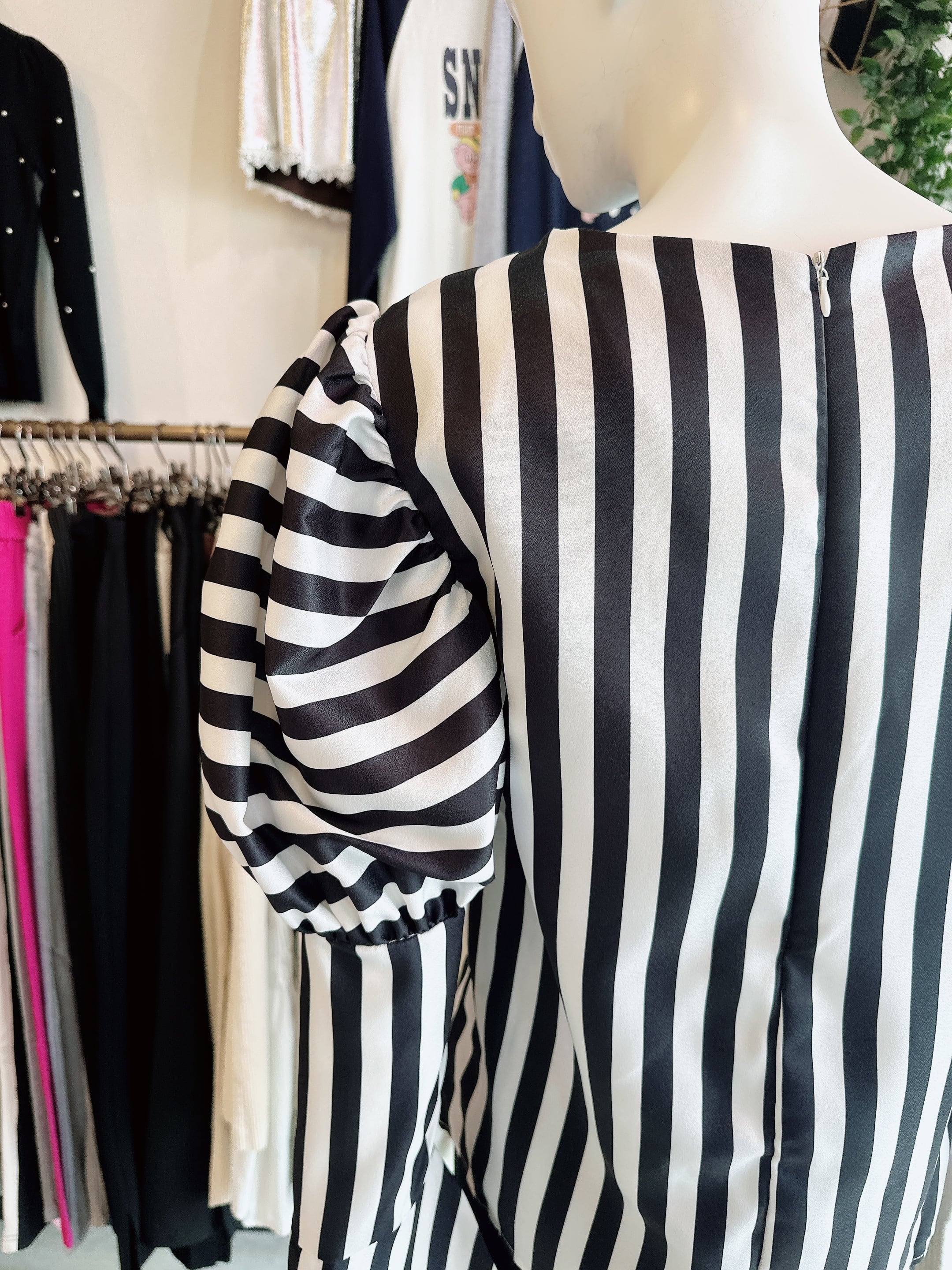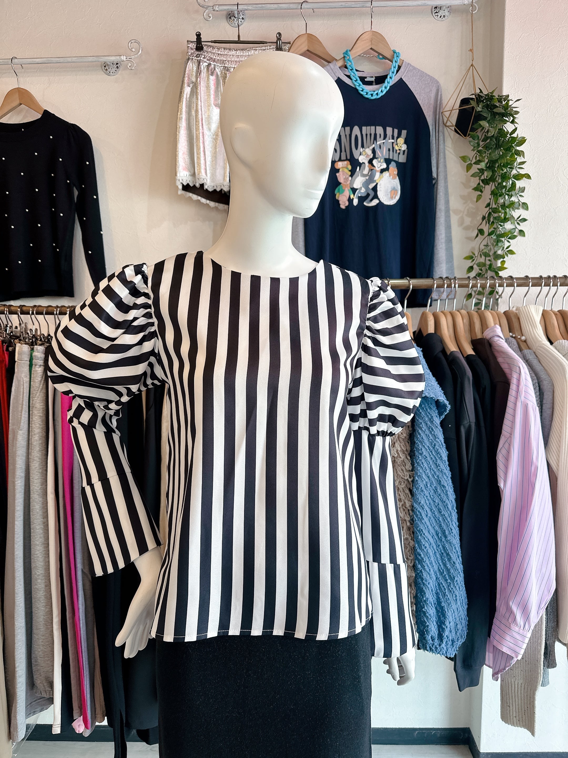 ストライプパフブラウス