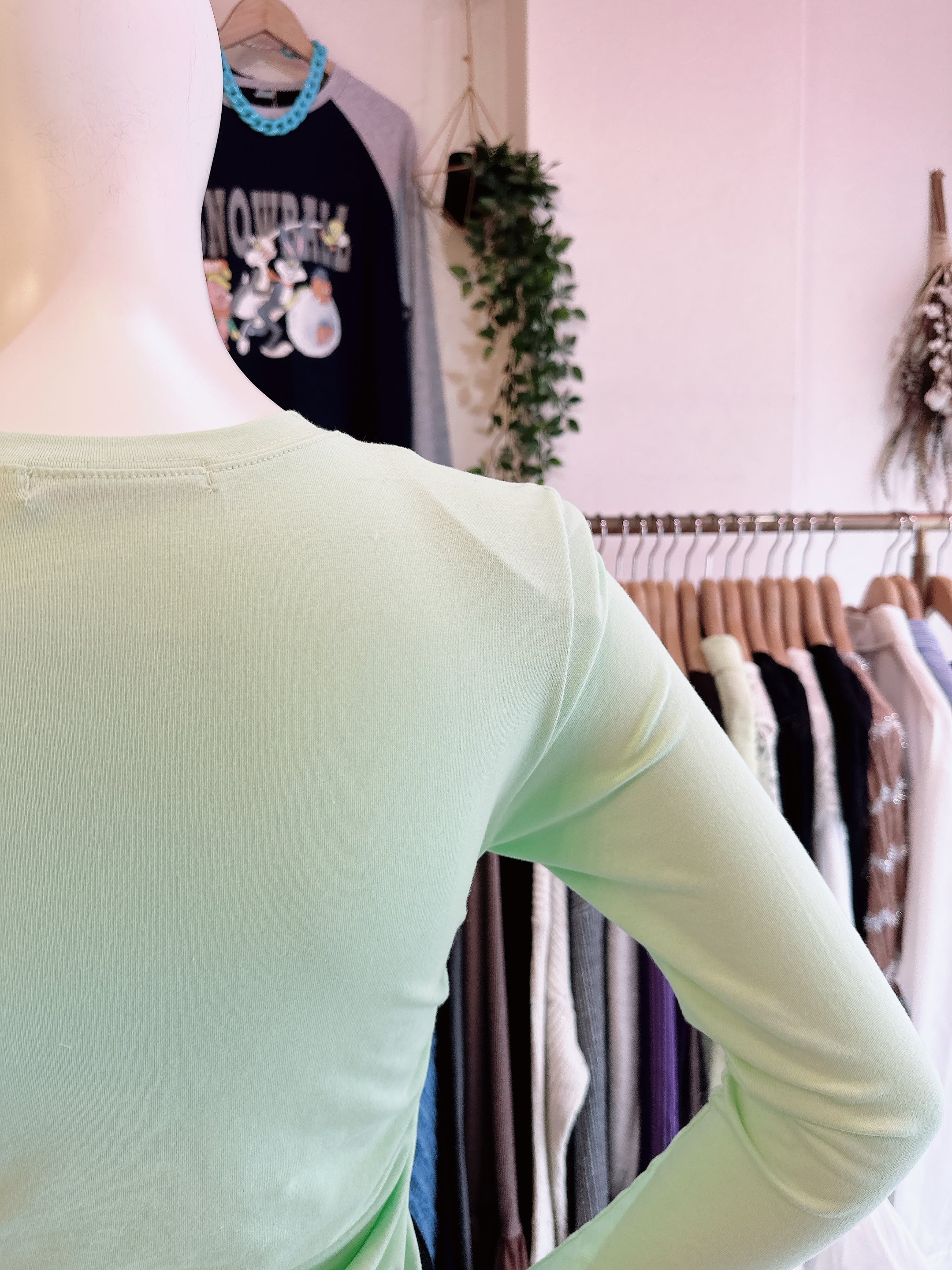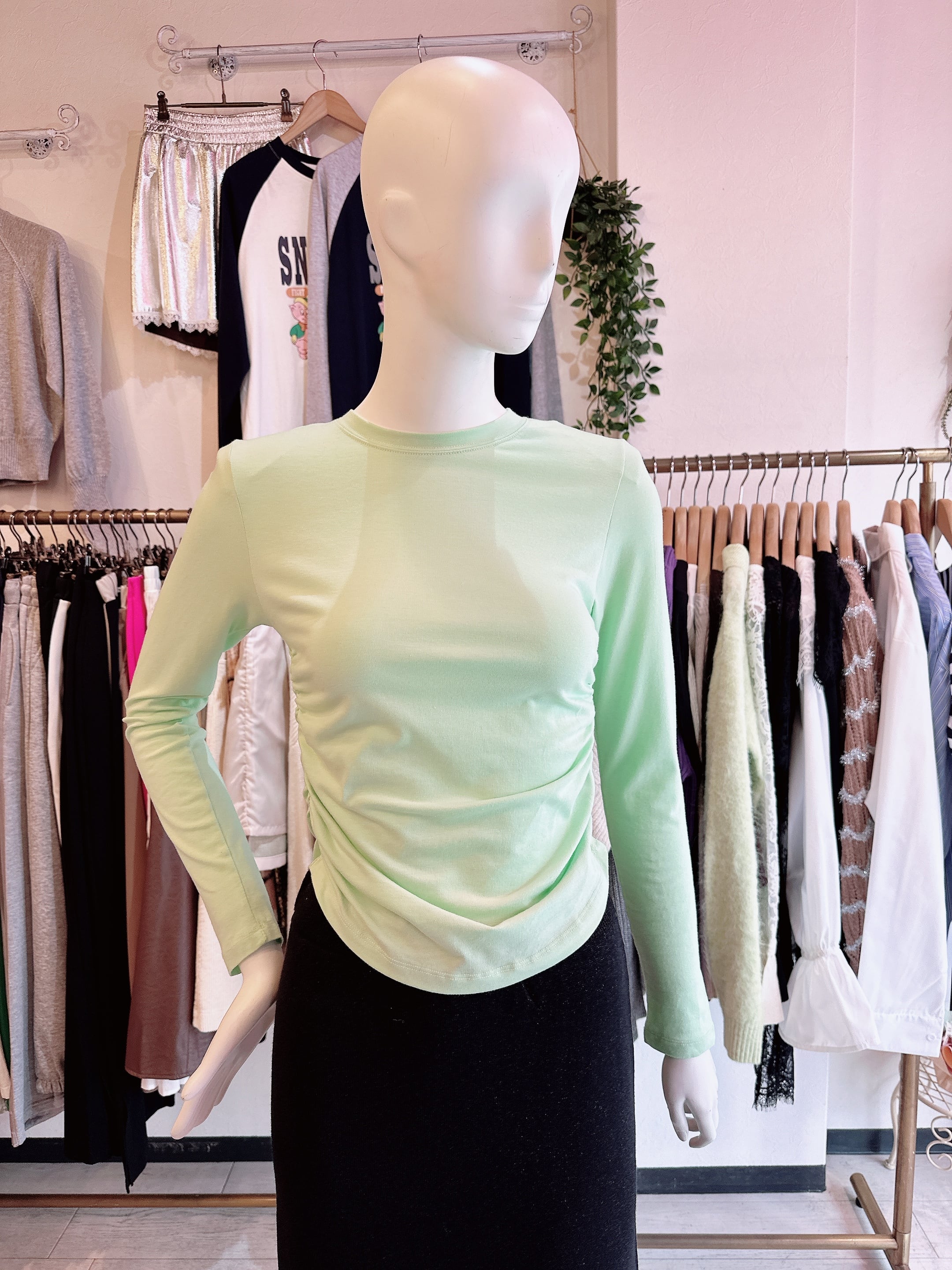 肩パッド付きサイドギャザーカラーロンT