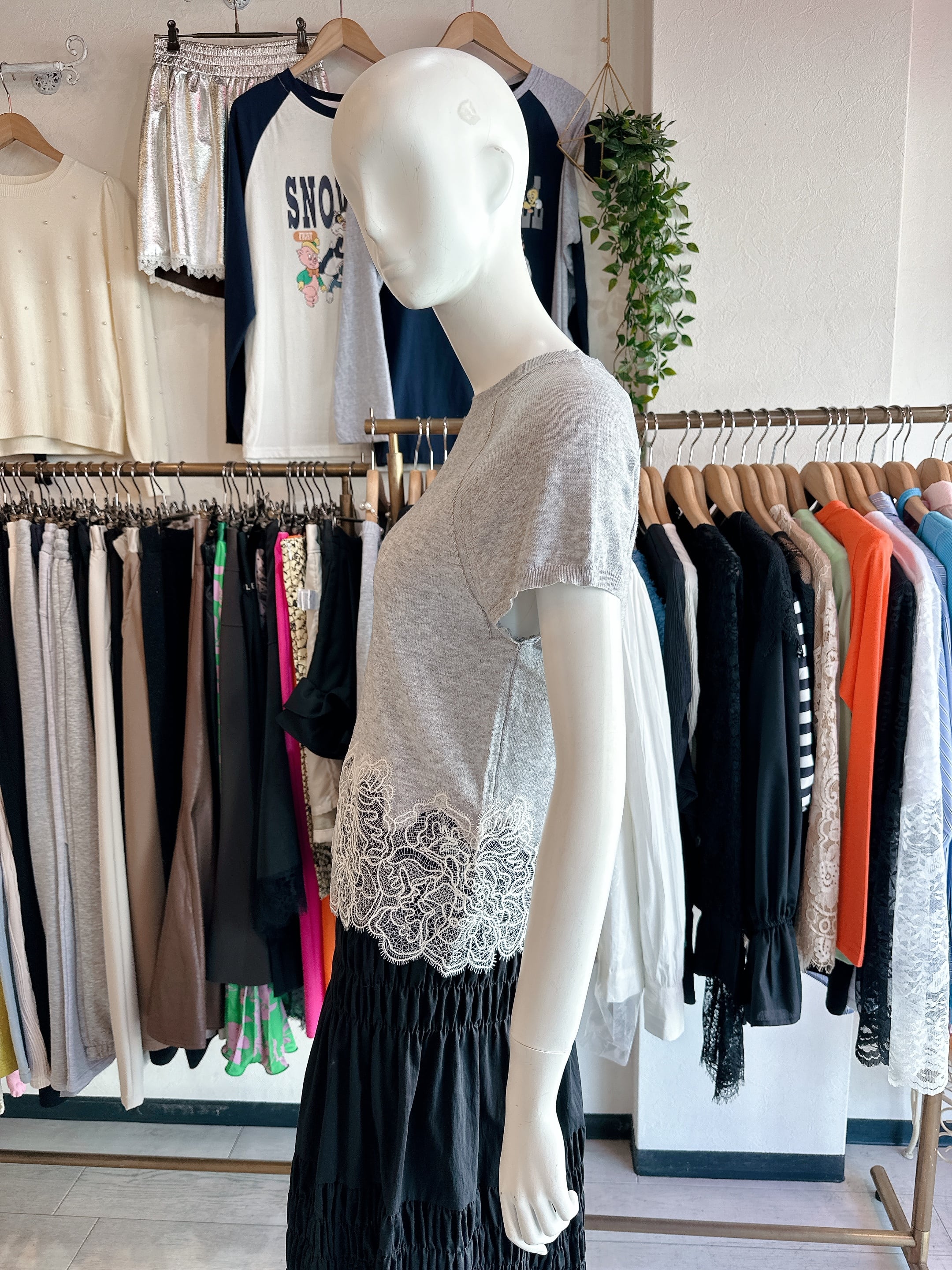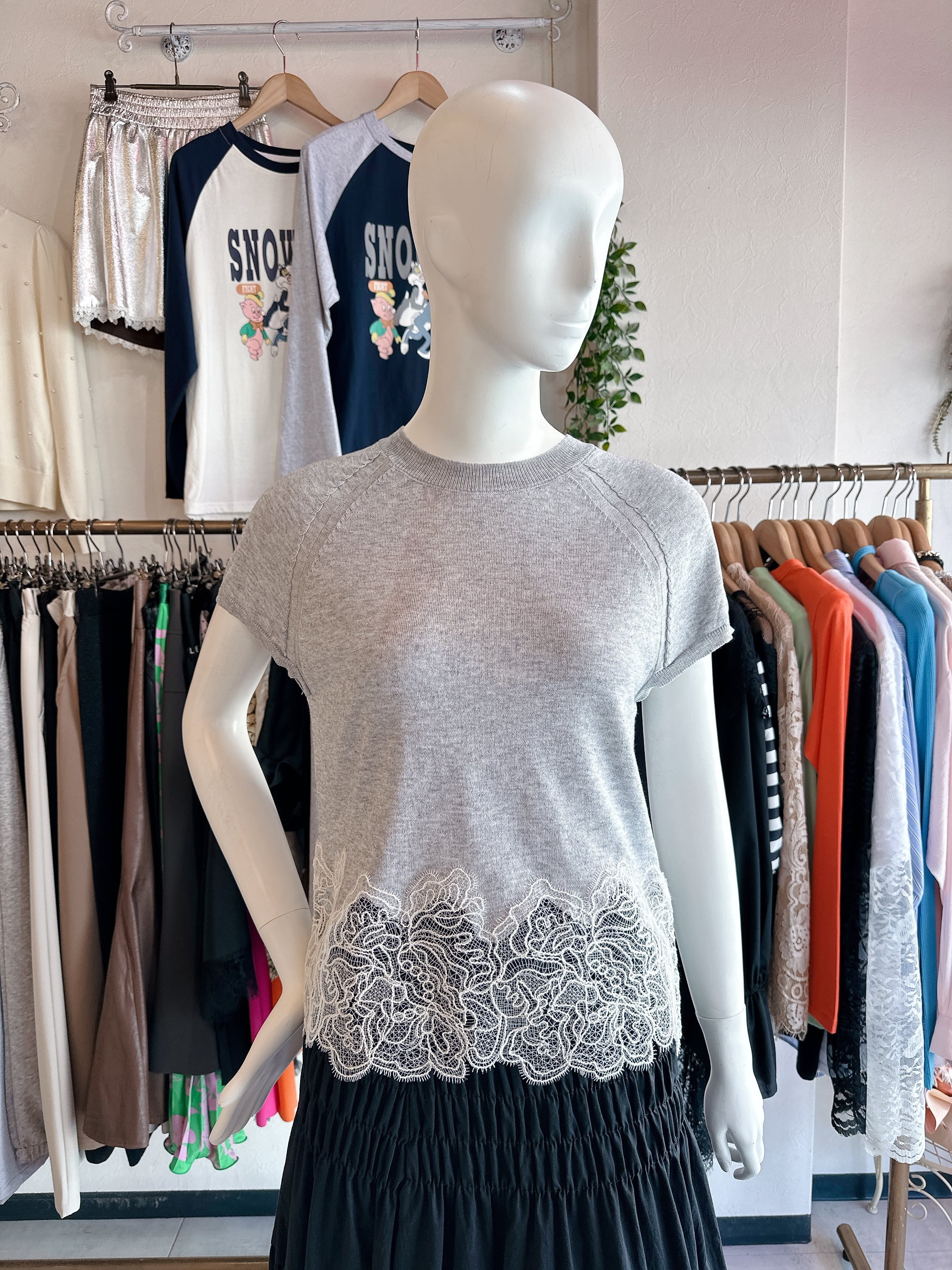 裾レースニット