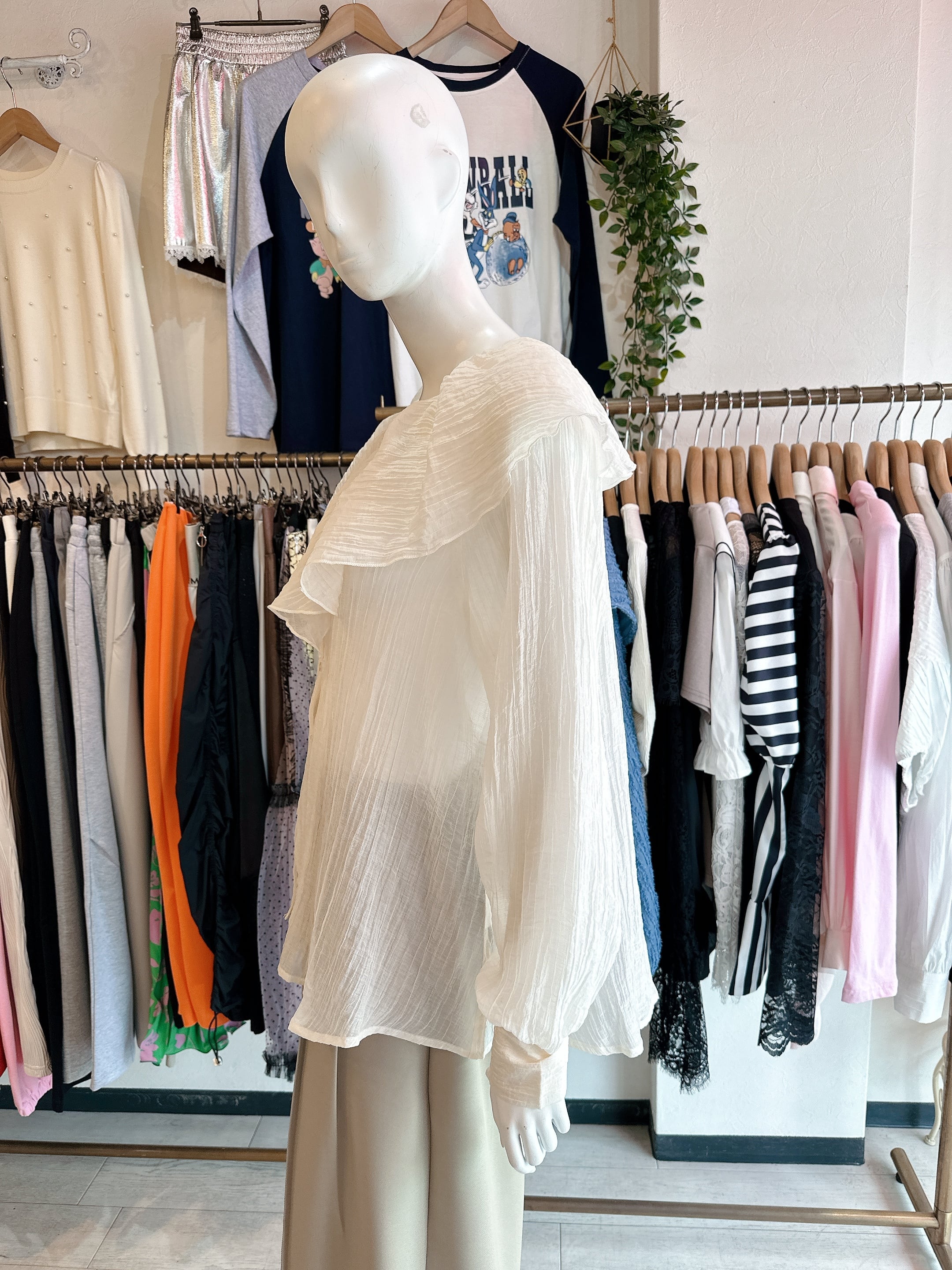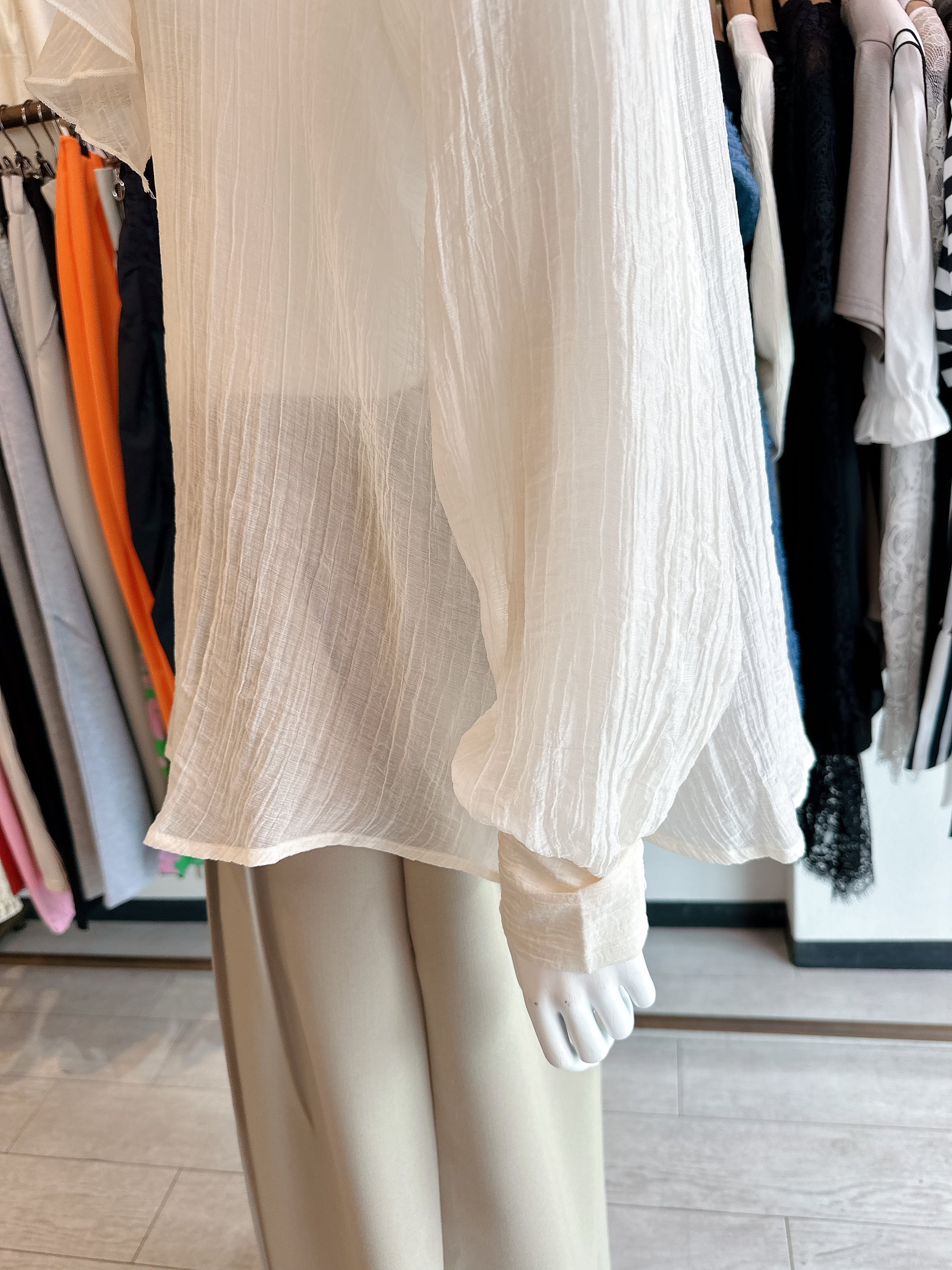 シアーリンクルフリルブラウス